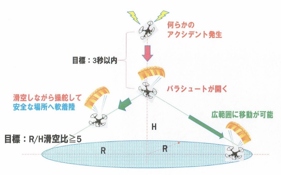 無人航空機用操舵機能付き パラシュート開発・特許出願